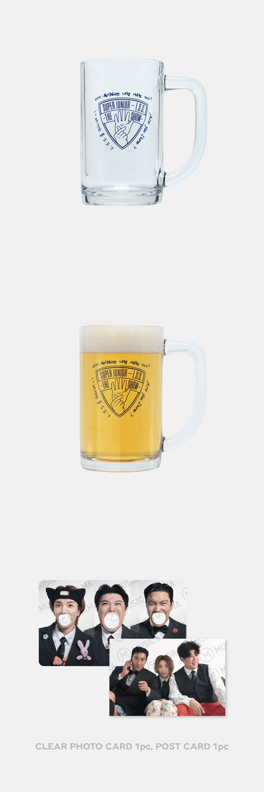 Item : GLASS BEER MUG (Glass Beer Mug 1pc, Clear Photo Card 1pc, Postcard 1pc)