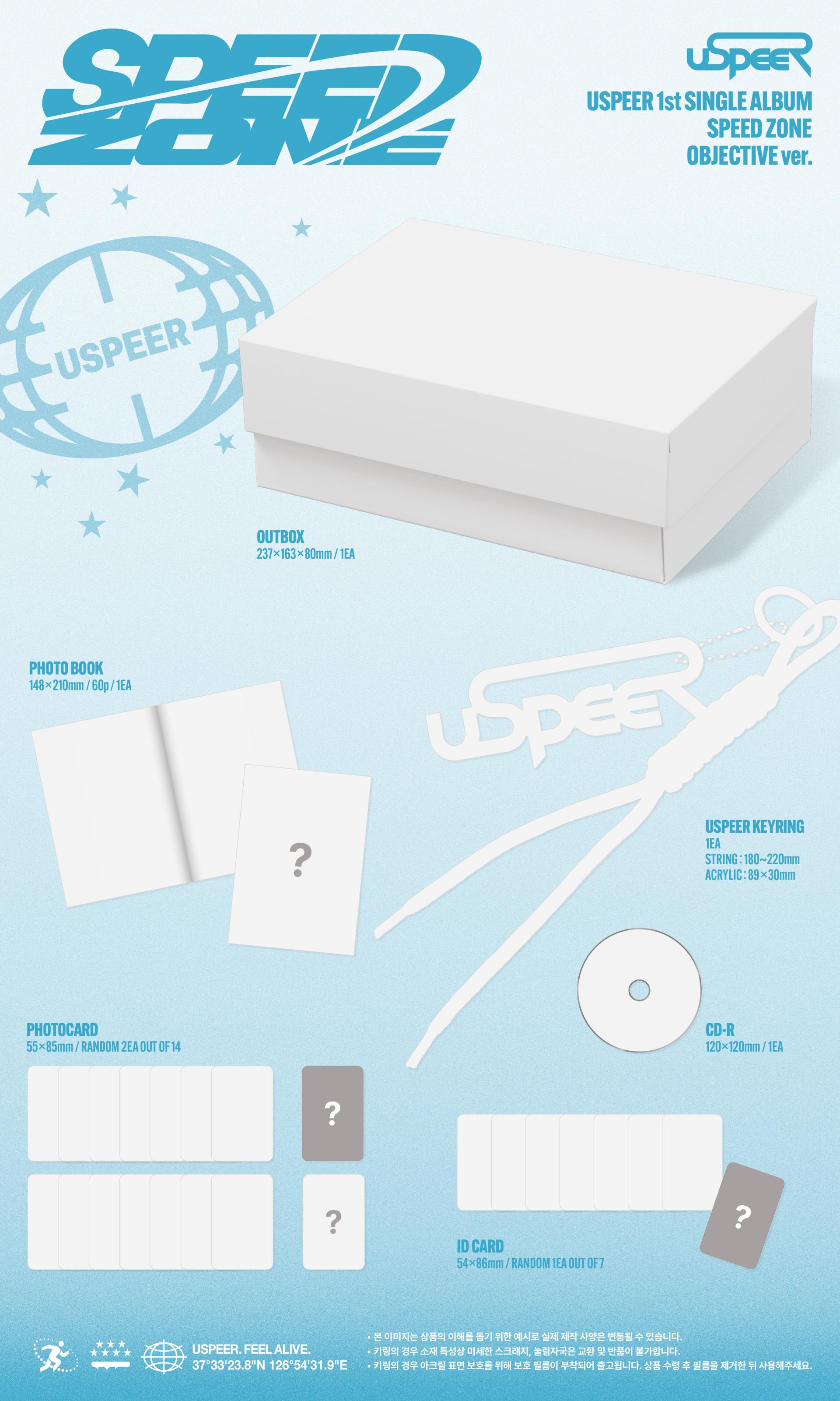 - USPEER KEYRING : STRING (180~220mm), ACRYLIC (89*30mm) / 1종 삽입 (버전 별 이미지 상이)