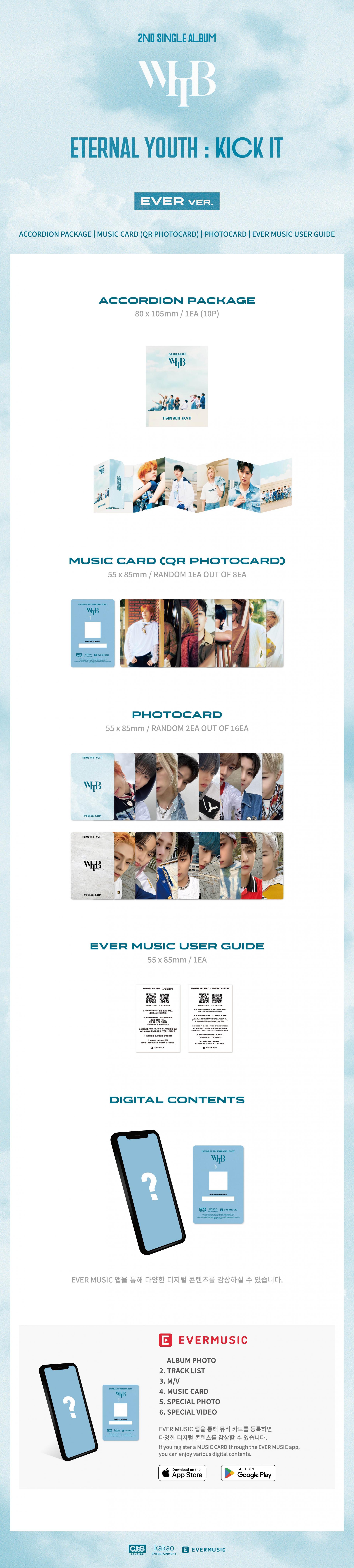 'ETERNAL YOUTH : KICK IT'은 첫 번째 싱글앨범 'Cut-Out'(컷 아웃)에 이어 새로운 휘브의 이야기가 펼쳐지는 시리즈로, 5세대 K팝 아이돌의 핫루키 WHIB의 업그레이드된 음악성이 담긴 3곡이 수록됐다.